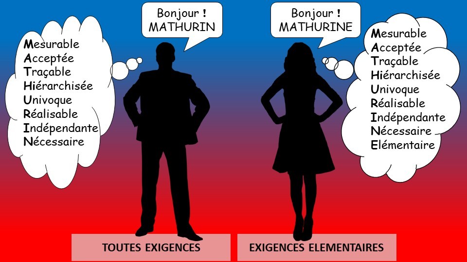 De plus, pour les exigences élémentaires dont nous avons parlé tout à l’heure, il faut vérifier qu’elles sont bien Elémentaires ! On ajoute un E à la checklist et l’acronyme devient MATHURINE …